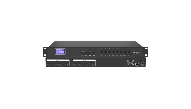 产品描述: 高清HDMI矩阵一体式,可兼容支持480p,720p,1080i,1080p分辨率,可在此信号模式下使信号传输衰减降至最低,提供良好的高清晰表现表现,保证了图像信号能高保真地输出。具有RS...