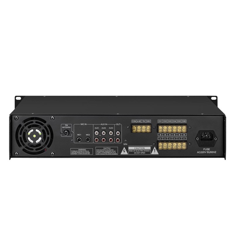 ■ 2种功率输出方式:定压输出100V、70V和定阻输出4~16Ω,5分区输出方式:定压输出100V。