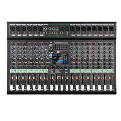 ◆内置99种DSP数字效果器,内置USB播放器,MP3播放,USB直插录音,内置蓝5.0接收播放,USB音频声卡(连接 电脑)将电脑播放的声音传输到调音台