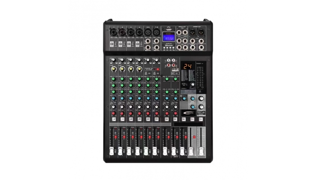功能特点: 1.8 路话筒输入,8路(4组)立体声输入 2.带48V幻像电源 3. 1-8路带80Hz低切功能,13-16路带莲花输入接口,接线方便 4.输入高中低3段均衡 5.4个辅助输出,4个AU...