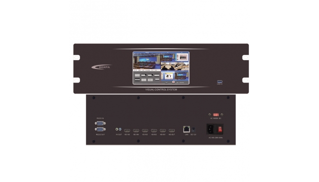 功能特征 1、1.5U机箱标准机柜设计,编程简单易学,可通过串口单独控制 2、主机自带8个自定义按键,自定编程。比如投影机开/关 幕布升降等功能 3、全面支持第三方设备及控制协议,可自行设置多种控制协...