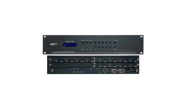 产品描述: 高清HDMI矩阵一体式,可兼容支持480p,720p,1080i,1080p分辨率,可在此信号模式下使信号传输衰减降至最低,提供良好的高清晰表现表现,保证了图像信号能高保真地输出。具有RS...