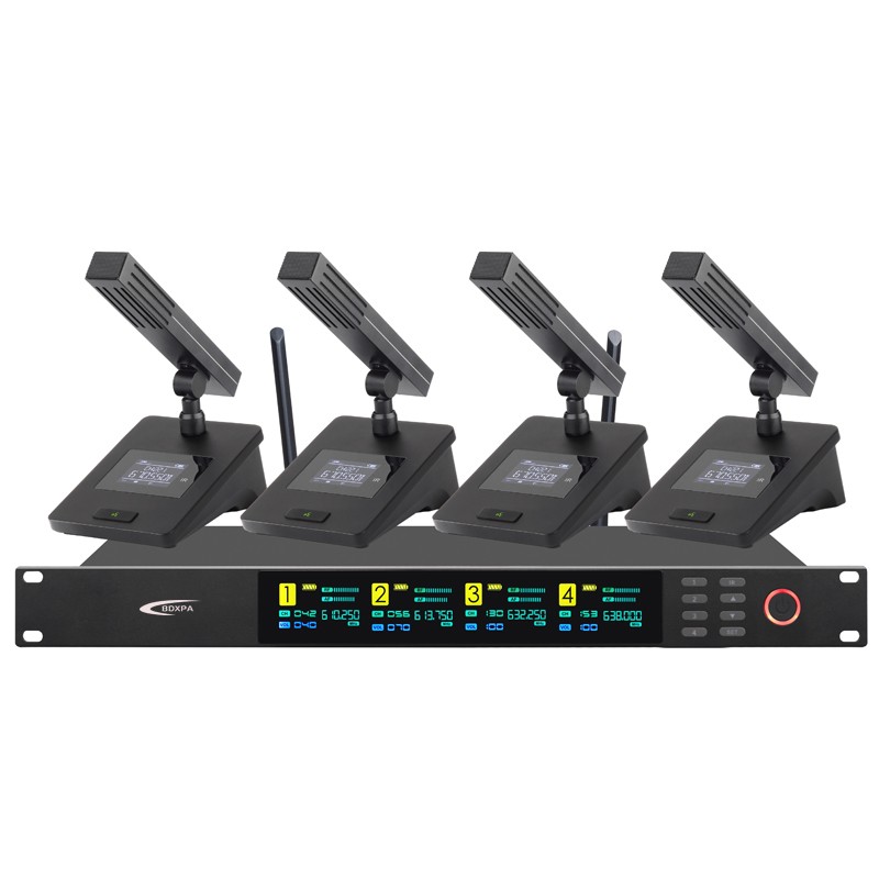 显示屏显示内容:显示工作信道、工作频点、RF接收信号、AF音频信号、锁屏指示、会议座实时电量