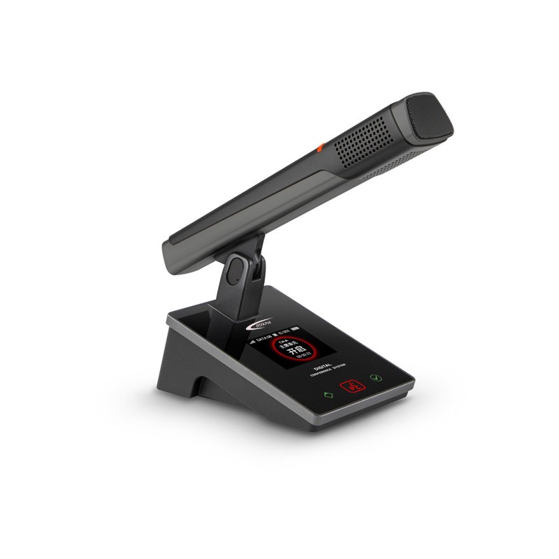 5. ★话筒头部带双色发言灯环,单元发言时灯环为常亮红色,单元申请发言时灯环为常亮绿色
