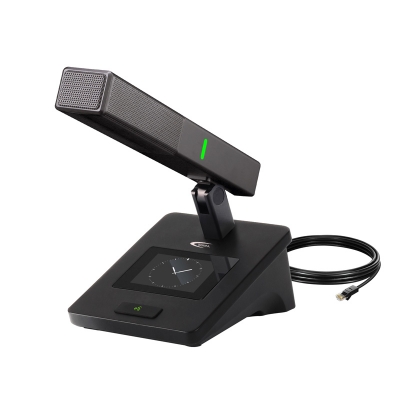 ·带屏保功能,长时间不发言的状态下自动进入时钟屏保。话筒带发言计时功能